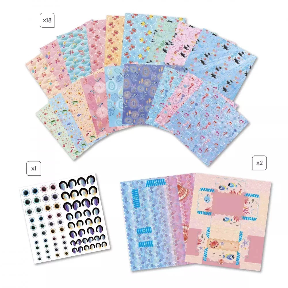 Sur le thème de la mer et des fonds sous-marins, réalise 20 créations en origami : 2 boîtes et 18 animaux marins