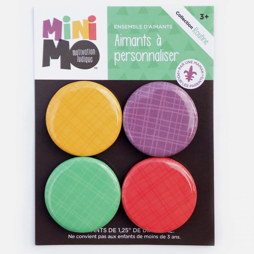 Set de 4 aimants colorés à personnaliser, à utiliser seuls, avec le tableau « Ma routine quotidienne » ou encore avec le minuteur.