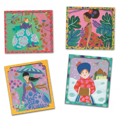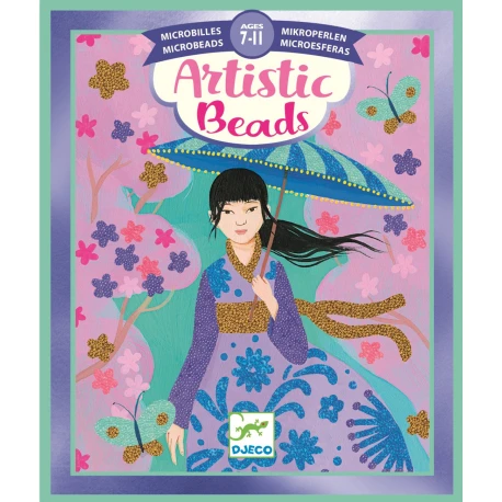 Artistic Beads est une nouvelle collection de bricolages Djeco en deux étapes : d’abord, l’enfant va décoller les parties autocollantes et ensuite venir y appliquer les microbilles.