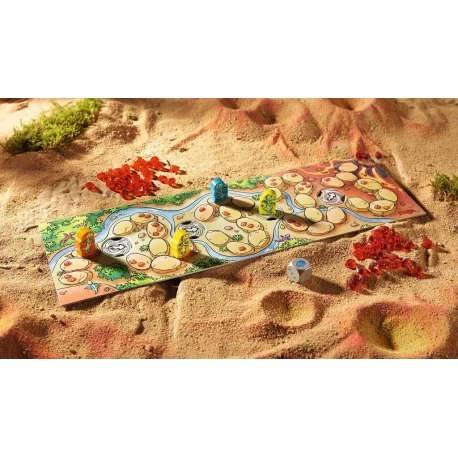 4 jeunes dragons font la course dans la vallée des dragons à la recherche de pierres volcaniques. Chacun lance le dé à tour de rôle et avance son dragon sur le parcours.