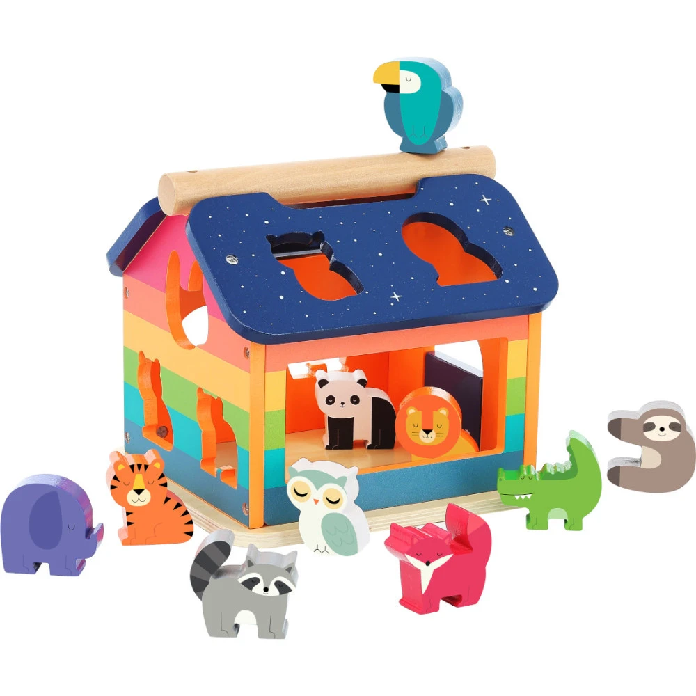 La Maison à formes Arc-en-ciel de Vilac avec ses 10 animaux en bois va faire le bonheur des tout-petits.