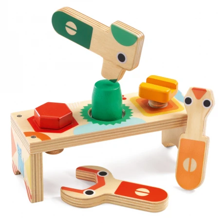 Etabli en bois Bricolou de Djeco pour développer la dextérité des enfants dès 18 mois.
