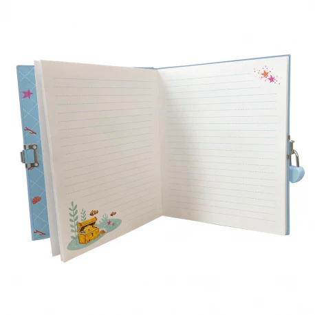 Carnet secret avec un cadenas en métal coloré en forme de cœur et son jeu de clés.
