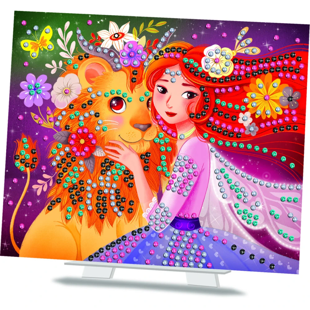 Contenu : 3 cartes carrées, 2200 diamants acrylique, 1 stylo, 1 gomme d’accroche, 1 contenant pour les diamants, 1 chevalet et 1 notice explicative.