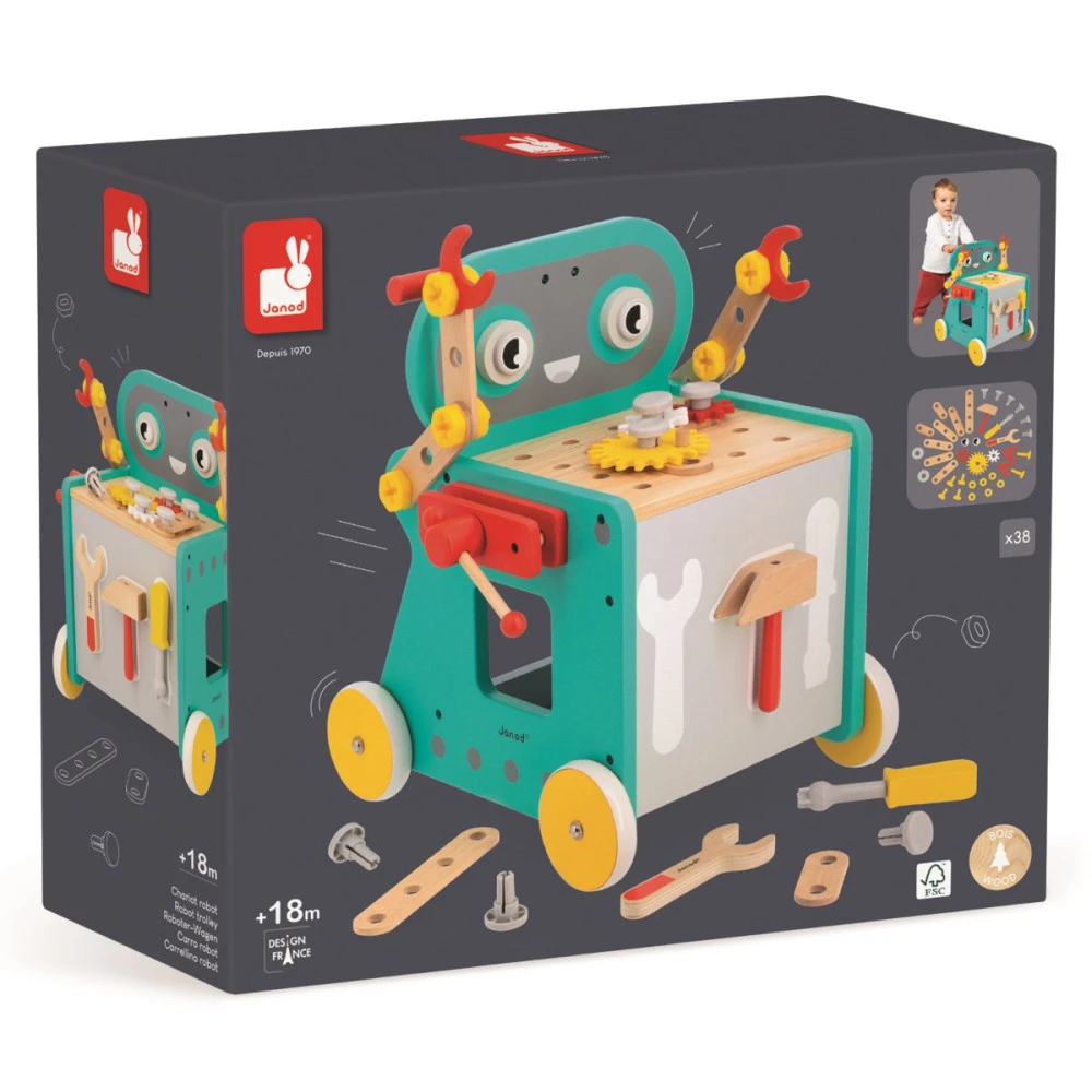 Chariot d’activités spécial bricolage avec 38 accessoires à manipuler et à assembler encore et encore.