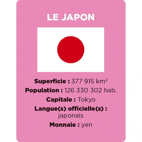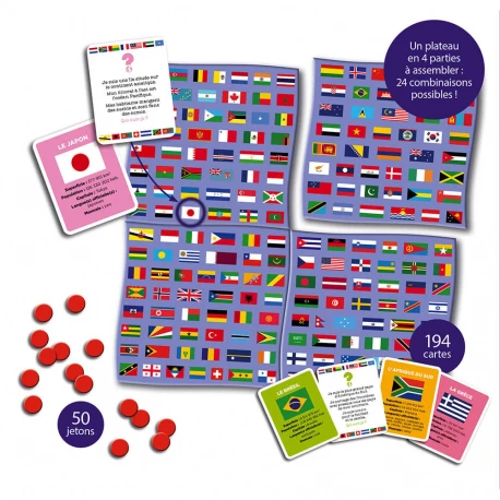 Le joueur pioche une carte question pour trouver le drapeau mystère avec au verso des infos intéressantes sur le pays.