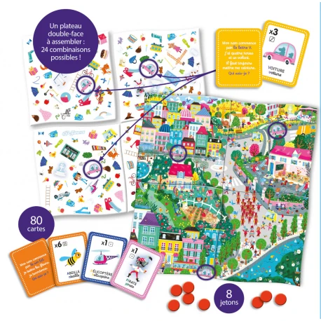 Contient 1 plateau de jeu double face, 80 cartes et 8 jetons