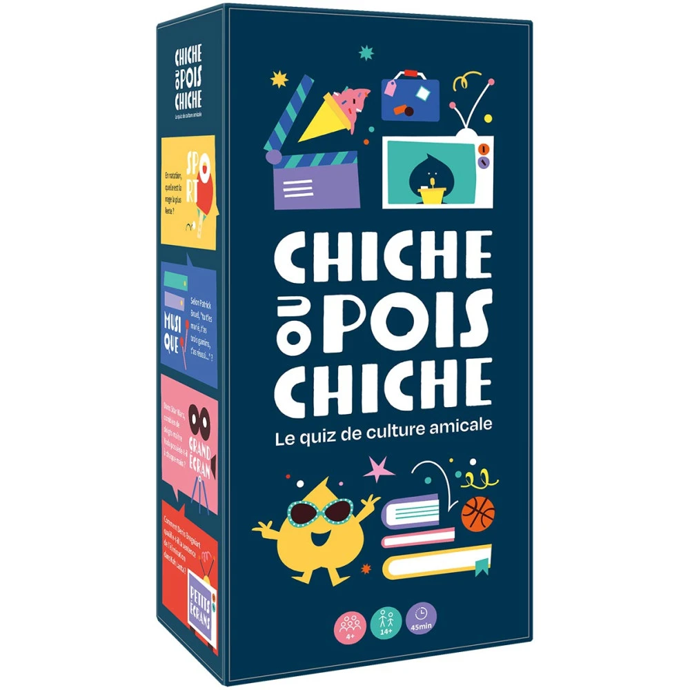 Chiche ou Pois Chiche est un jeu d’ambiance et de quizz de culture amical qui se joue par équipe, à partir de 4 joueurs