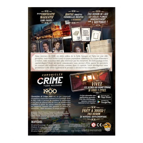 Téléchargez l’appli sur votre smartphone et c’est parti. Scannez les QR codes sur les cartes afin de vous déplacer, d’observer la scène du crime, d’interroger témoins et suspects, de trouver des preuves et résolvez l’enquête dans le temps imparti.