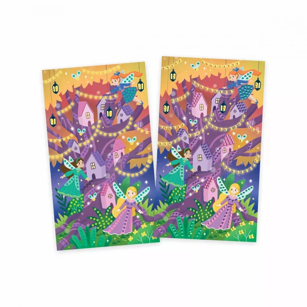 Avec ce coffret créatif « Mini-Strass Magie », aide-toi du stylet pour décorer les 3 tableaux de strass aux couleurs vives.