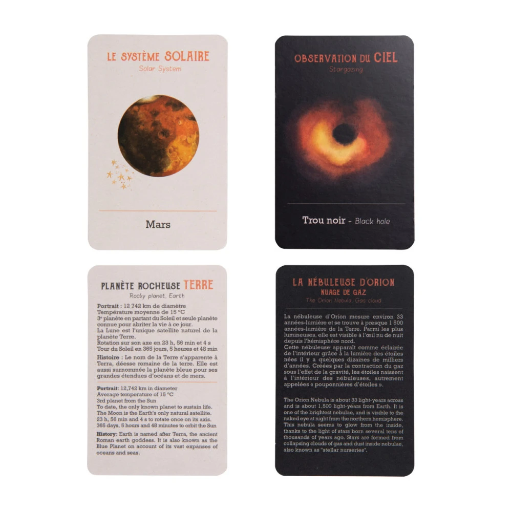 Avec son cahier d’activités, ses 16 cartes d’astronomie, un carnet sur la lune, 5 cartes en 3D avec des lunettes, des illustrations des constellations, 30 étoiles phosphorescentes à coller au plafond, une carte de la voûte céleste, des planètes à accrocher,… votre enfant va découvrir et comprendre les mystères du ciel, du système solaire et de l’espace.