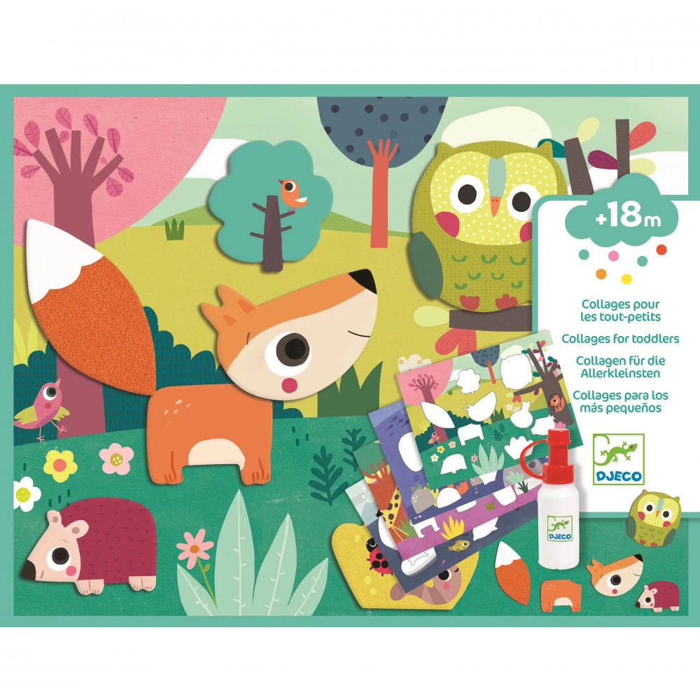 Les collages des tout-petits de Djeco, ce sont des formes épaisses en carton et faciles à détacher pour réaliser se premiers tableaux, dès 18 mois