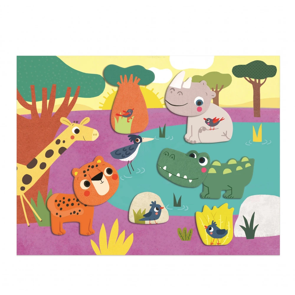 Contient 4 décors épais (21 x 28 cm), 4 planches de formes épaisses en carton, 1 tube de colle et 1 explicatif en couleurs