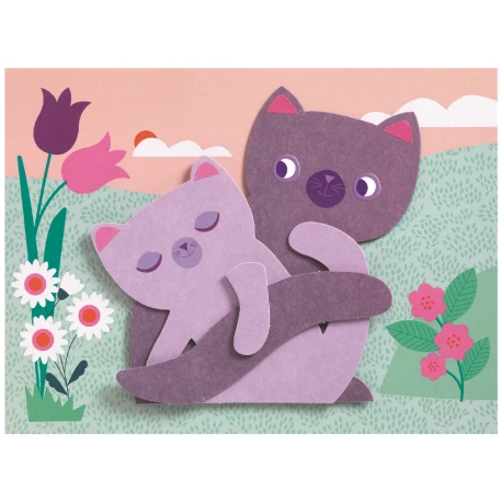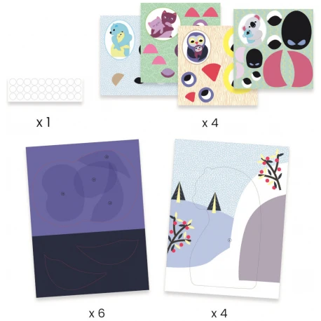 Contient 4 cartes illustrées à compléter, 6 feuilles de papier épais, colorées et prédécoupées, 4 planches de stickers, 1 planche d’autocollants double face et 1 livret explicatif qui accompagne l’enfant pas à pas.