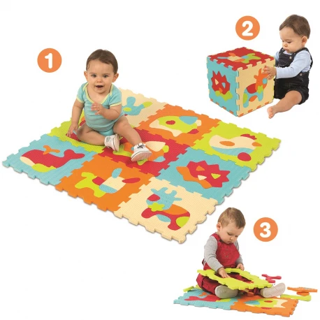 Ce tais en dalles de mousse est isolant (protège l’enfant du froid du sol), confortable (pour le plaisir de jouer) et hygiénique (très facile à entretenir).