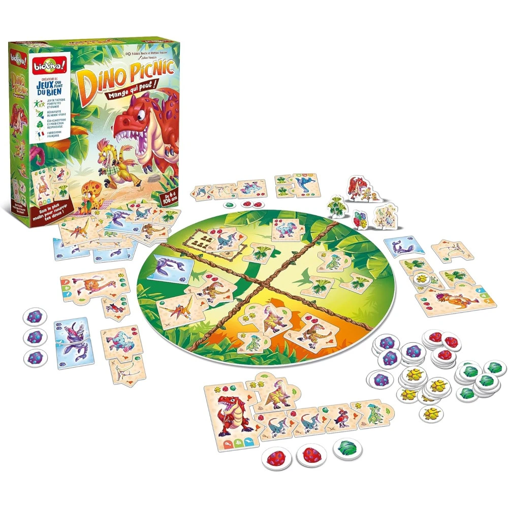 Le jeu familial « Dino Picnic » de Bioviva vous fait remonter le temps de 100 millions d’années où vous allez devoir nourrir vos dinosaures pour qu’ils puissent se reproduire.