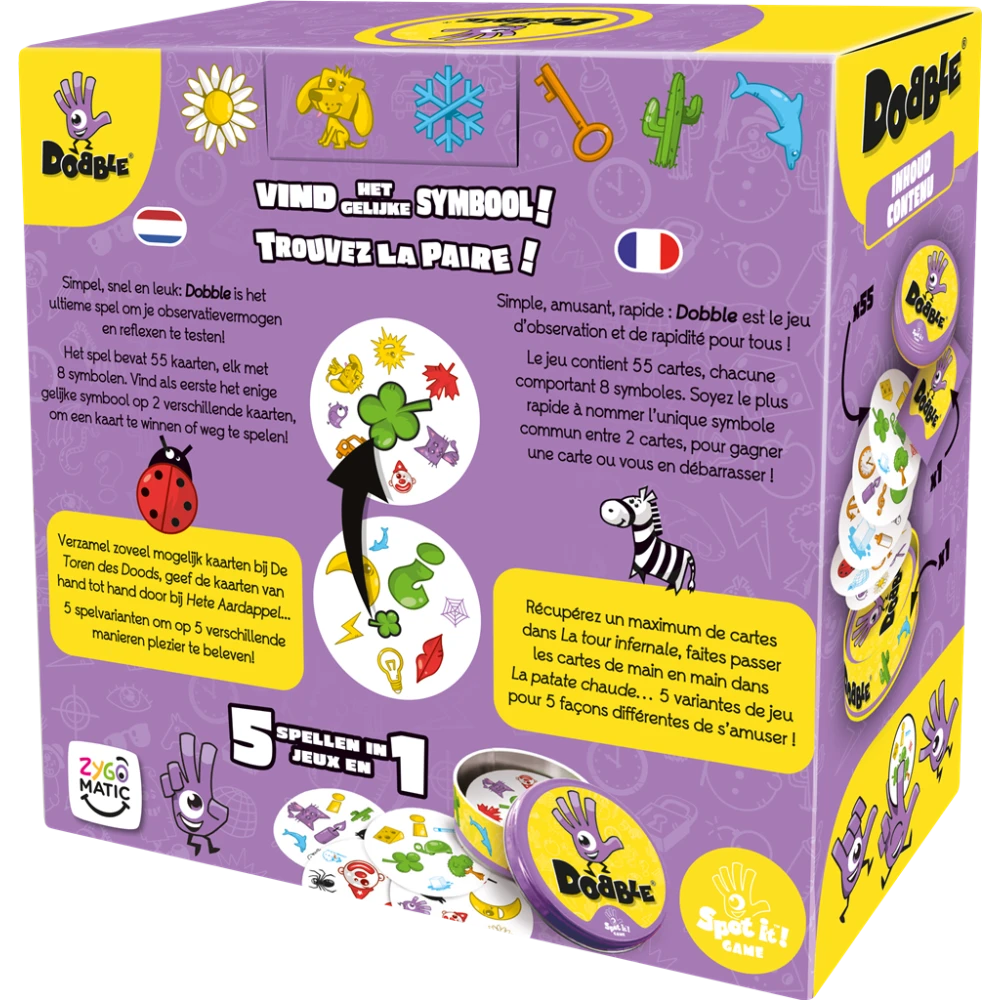 Dans chaque paire de cartes, vous trouverez un élément commun. A vous d’être le plus rapide dans votre observation! 5 règles de jeu sont possibles dans cette jolie boite de cartes rondes.
