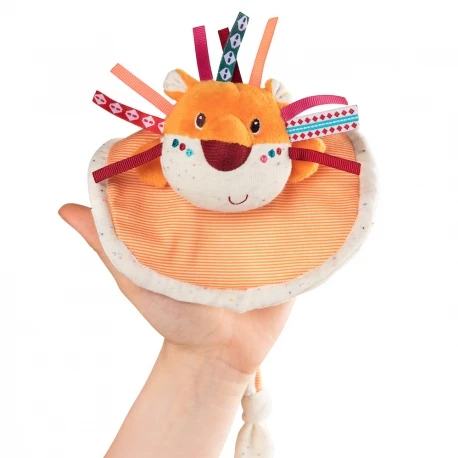 La petite tête du lion est une marionnette à doigt et permet ainsi de lui donner vie.