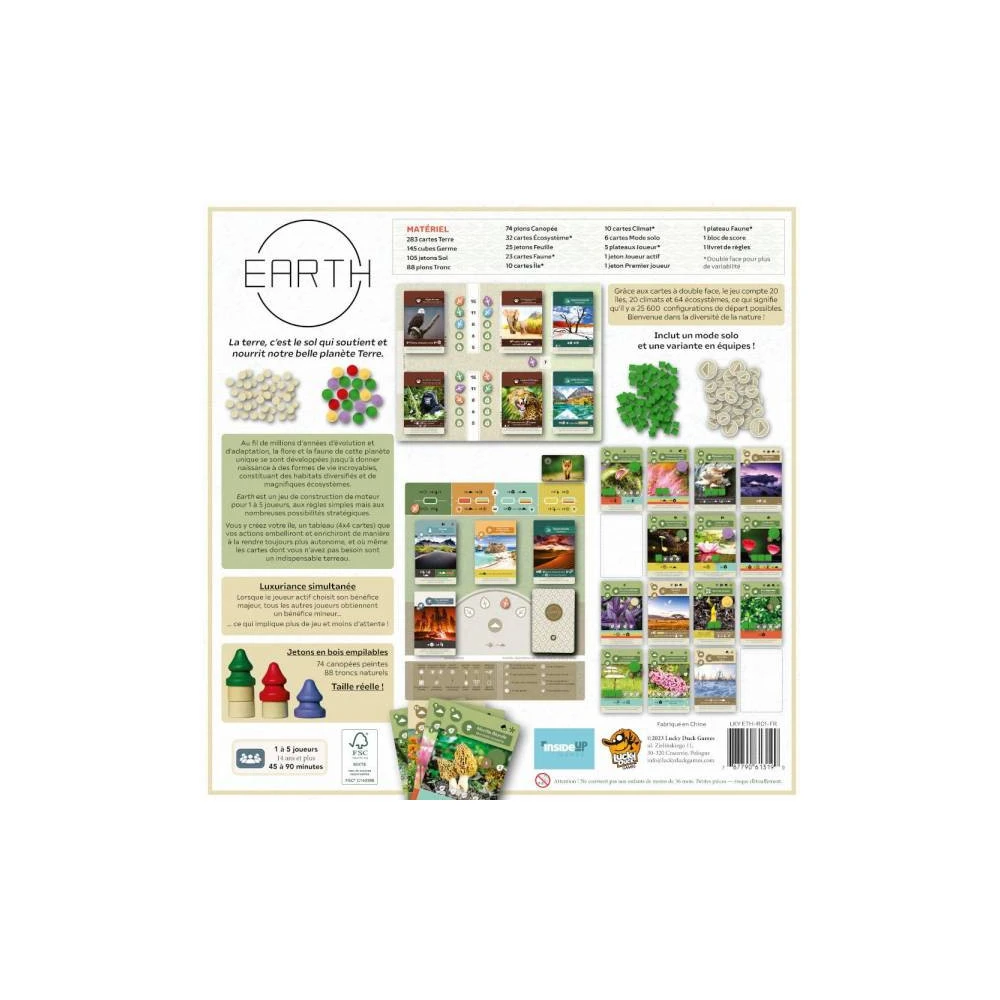 Dans le jeu Earth, vous allez devoir créer votre île en choisissant judicieusement vos cartes parmi les 358 cartes uniques et en les plaçant afin de constituer des écosystèmes autosuffisants.