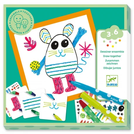 Contient 16 feuilles à dessiner, 4 planches de stickers, 30 cartes, 3 feutres, 3 crayons et 1 livret explicatif pas à pas.