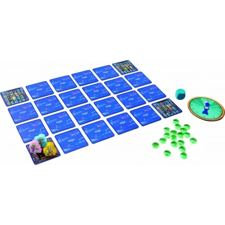 Chaque joueur va lancer le dé et avancer un des 3 pions « chasseur de fantôme » sur une des cartes. Soit c’est une serrure et le pion est envoyé aux oubliettes, soit c’est un fantôme. Si les 3 pions sont sur un fantôme similaire alors on piège le trio de fantômes avec un « projectile » vert.