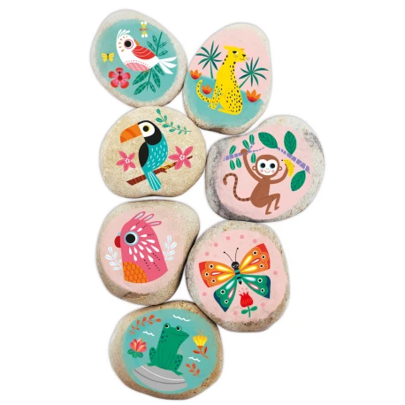 7 vrais galets à décorer avec de la peinture et de délicats motifs animaux à transférer.