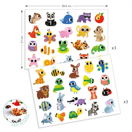 Plus de 100 gros stickers de jeunes animaux rigolos et colorés très faciles à attraper pour les petits dès 18 mois.