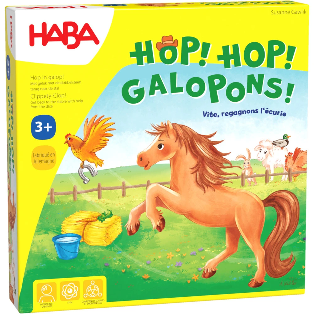 Hop ! Hop ! Galopons est un excellent premier jeu de société pour les enfants dès 3 ans.