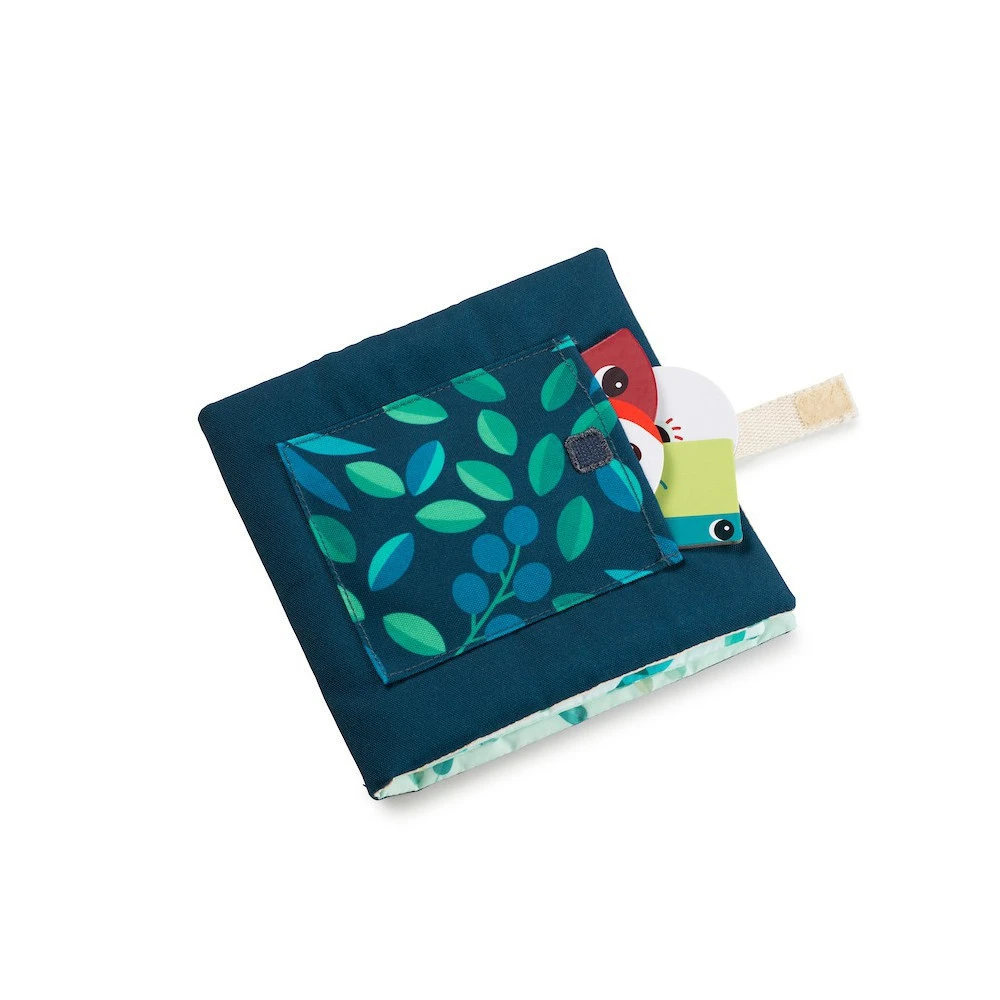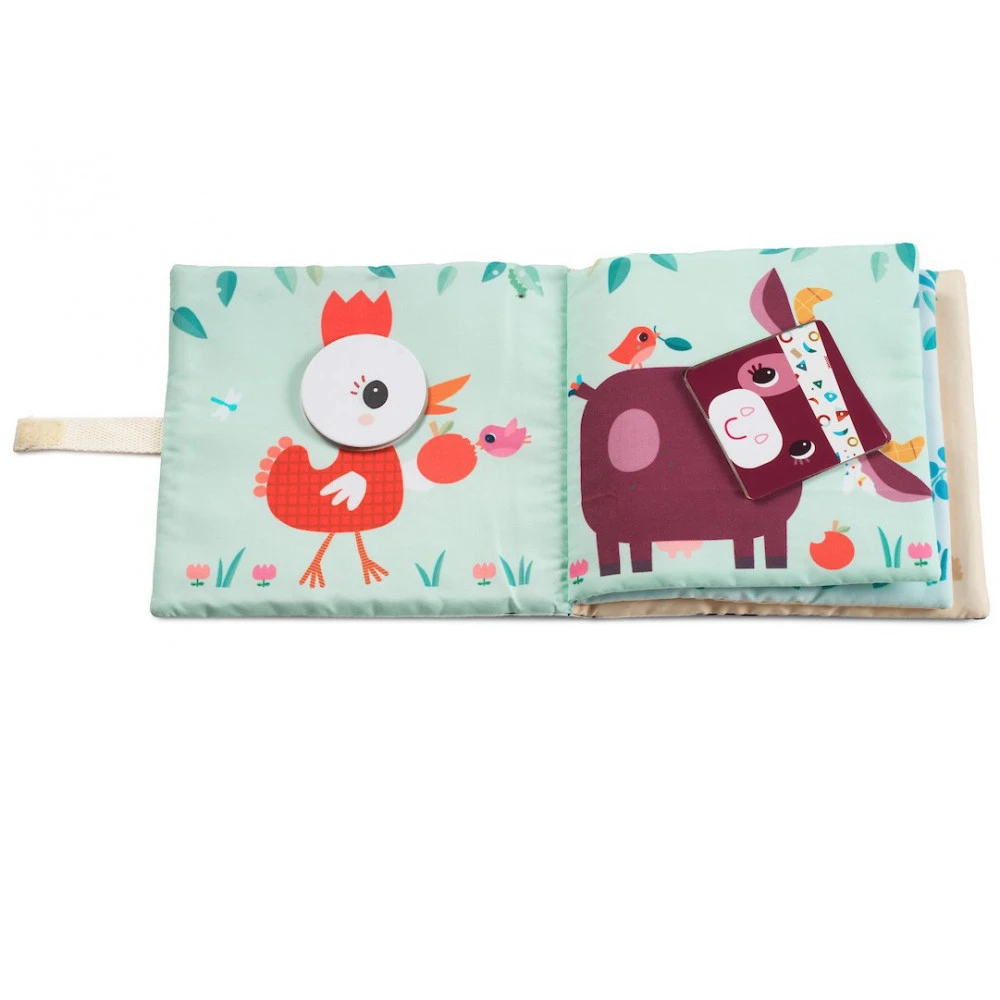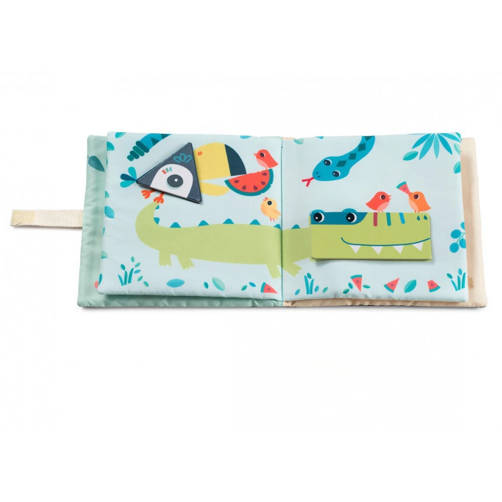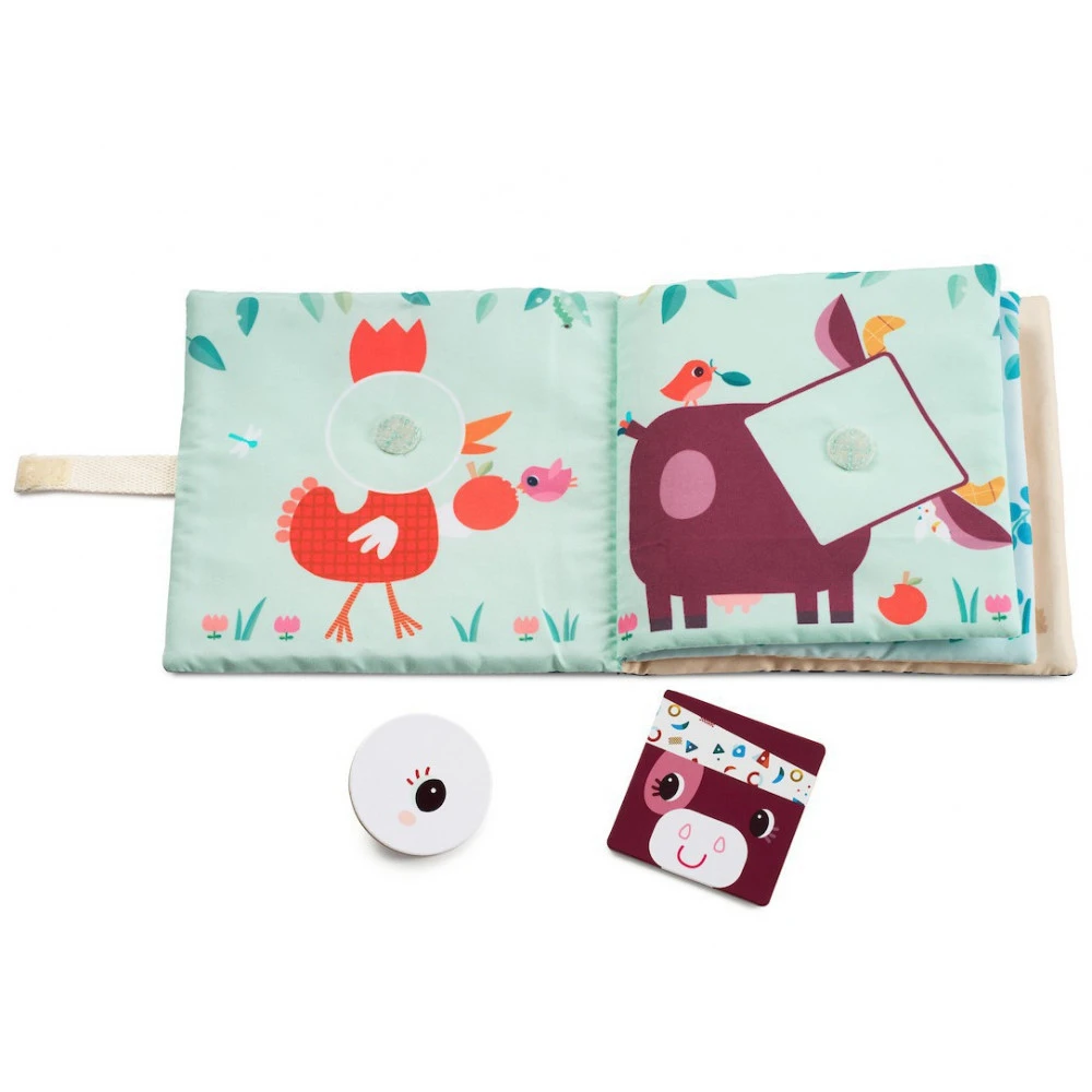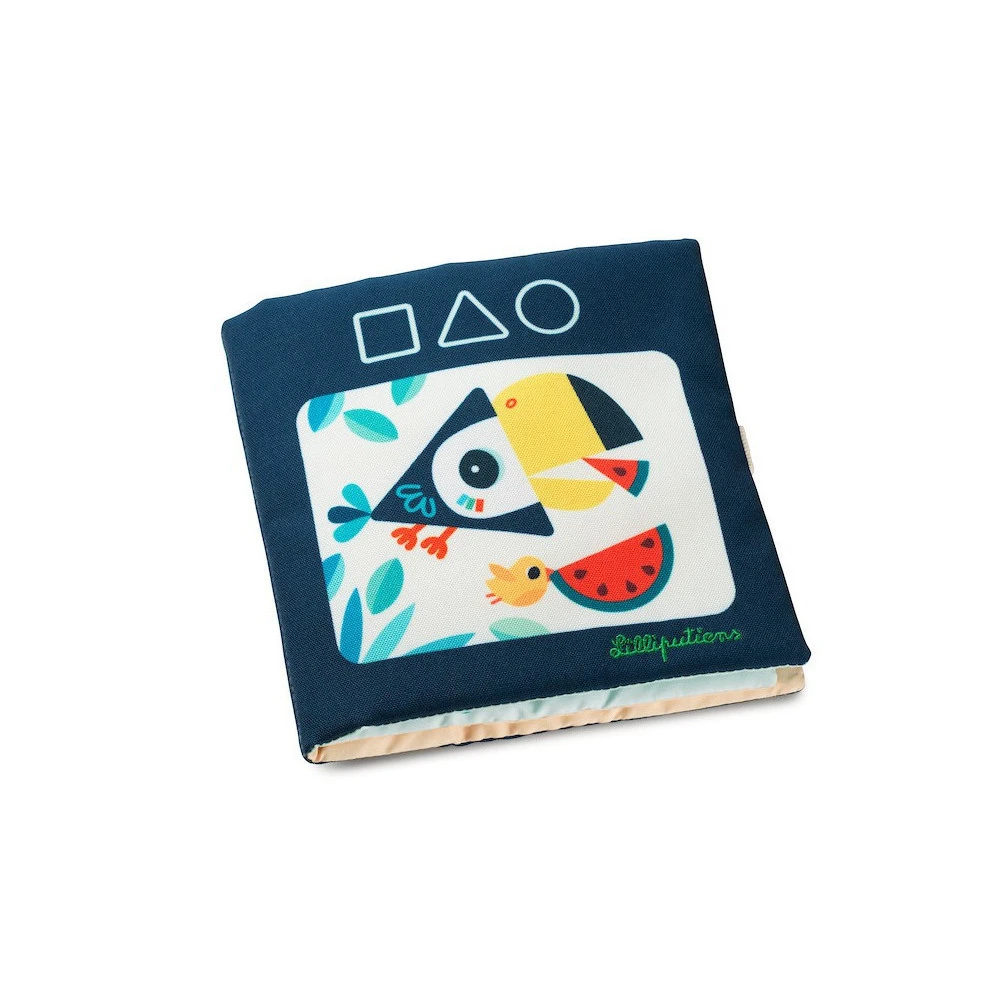 Livre d’apprentissage en tissu avec des formes géométriques en carton pour découvrir les formes en jouant avec les animaux.
