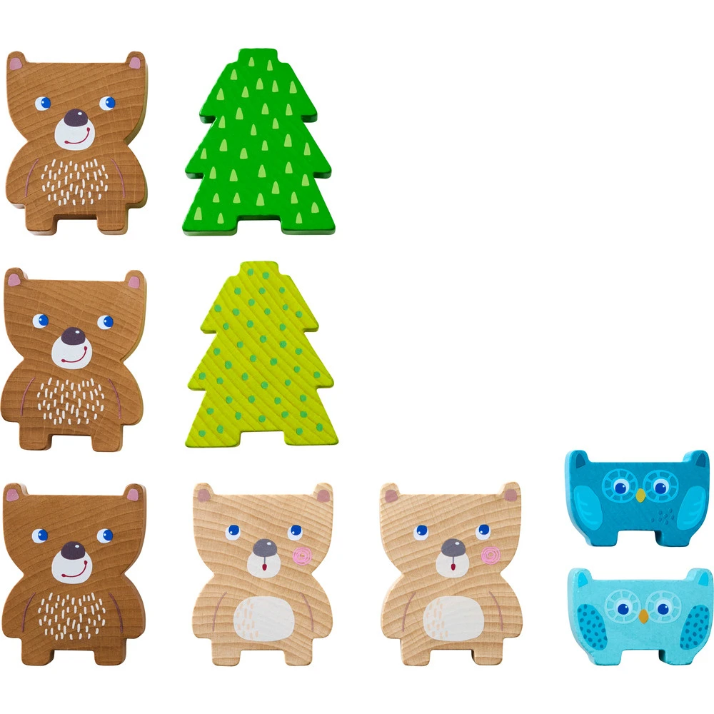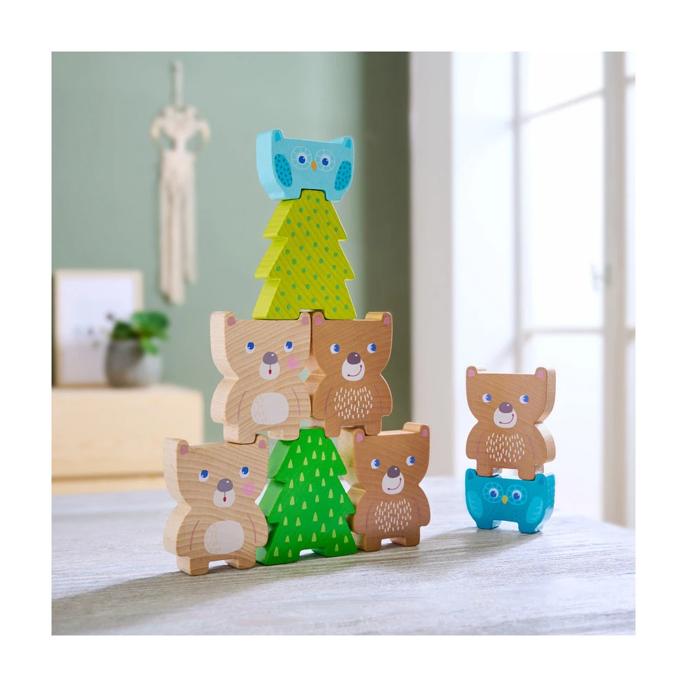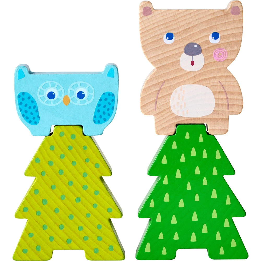 Amuse-toi, librement ou en reproduisant un modèle, à empiler les ours, les sapins et les hiboux.