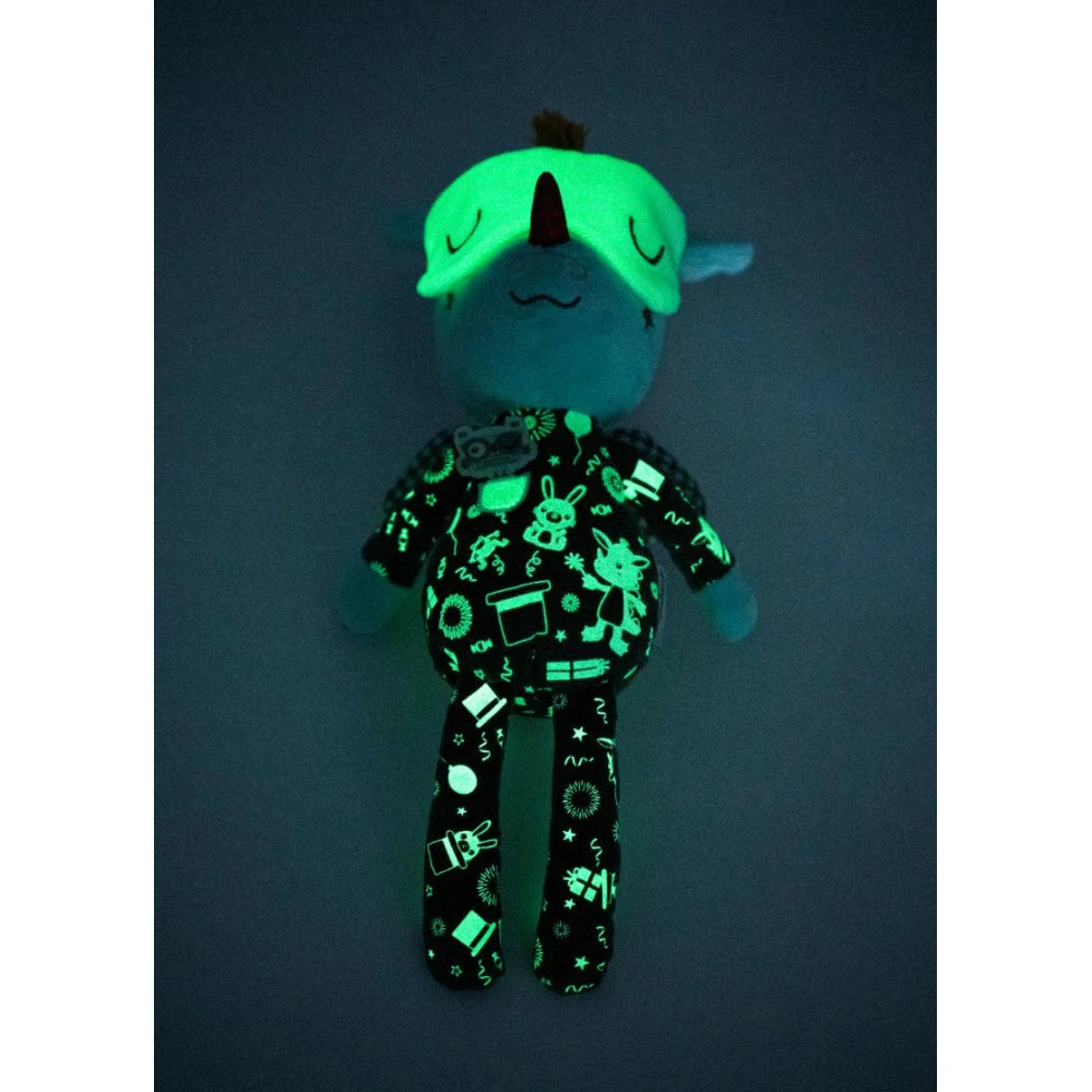 Peluche douce et câline dont le pyjama et le masque « glow in the dark »