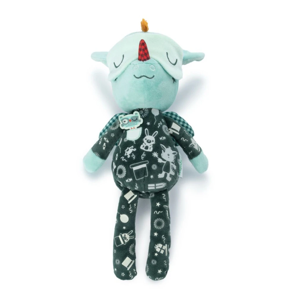 Joe le dragon de Lilliputiens a enfilé son pyjama magique et son masque pour aider votre enfant à s’endormir paissiblement.