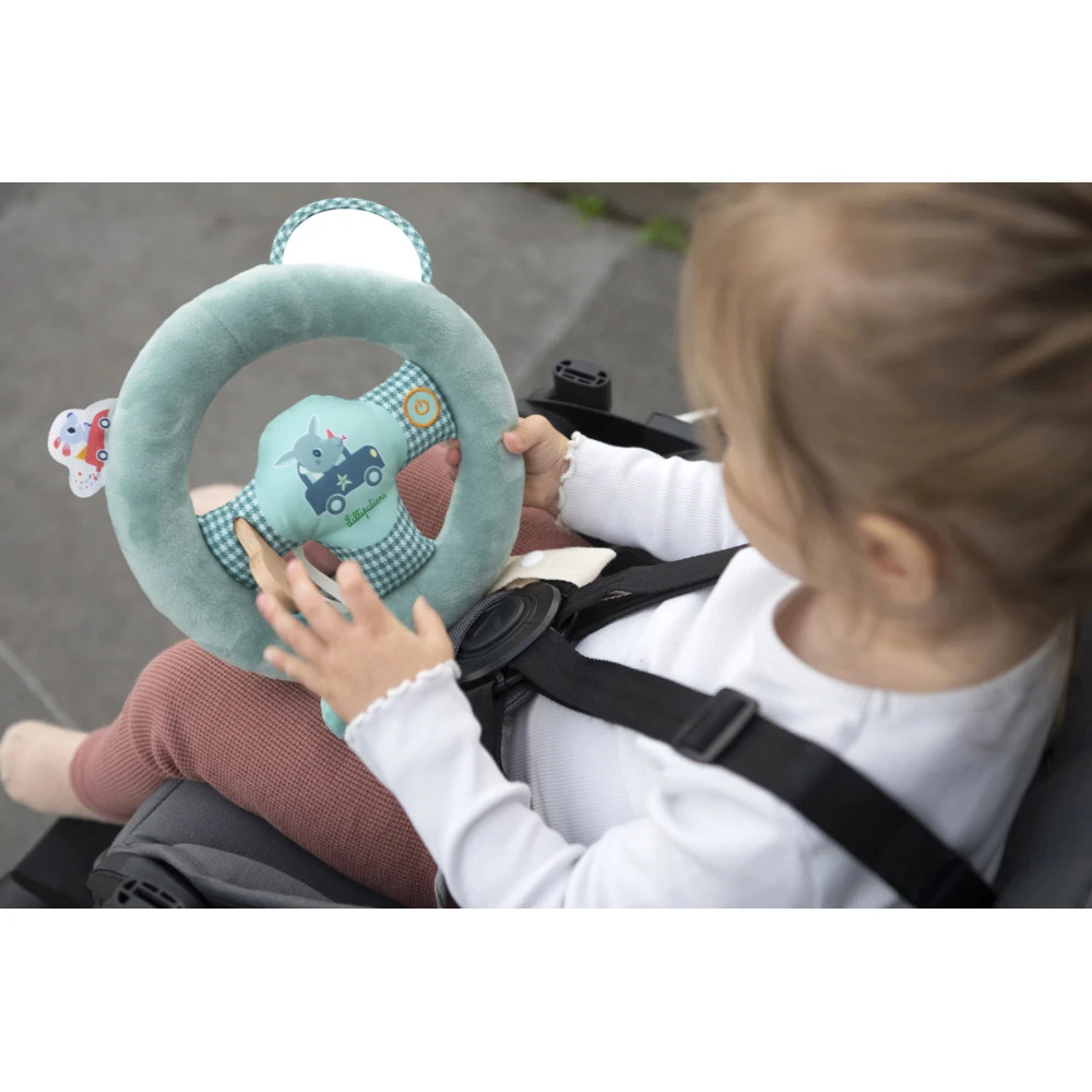 Le volant d’éveil s’attache à la poussette, au maxi-cosi ou au siège auto