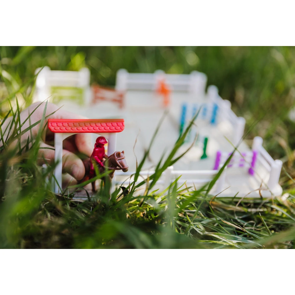 - Placez le poche d’arrivée ainsi que le cheval et sa cavalière sur le plateau de jeu comme mentionné sur le défi,