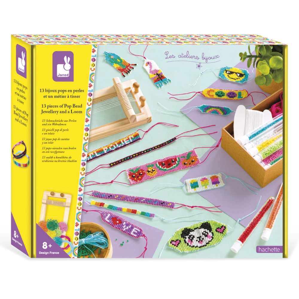 Avec ce coffret de « Bijoux Pop en perles » qui contient 10 tubes de 500 perles de rocaille, tu pourras réaliser 13 bijoux funs et colorés.