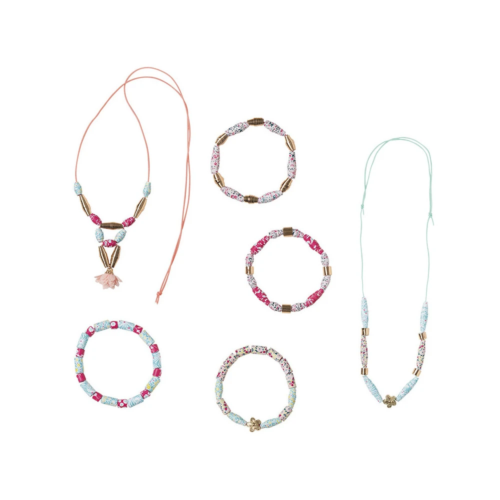 Kit créatif de Janod pour réaliser 2 colliers et 4 bracelets avec des perles fabriquées avec des papiers fleuris.