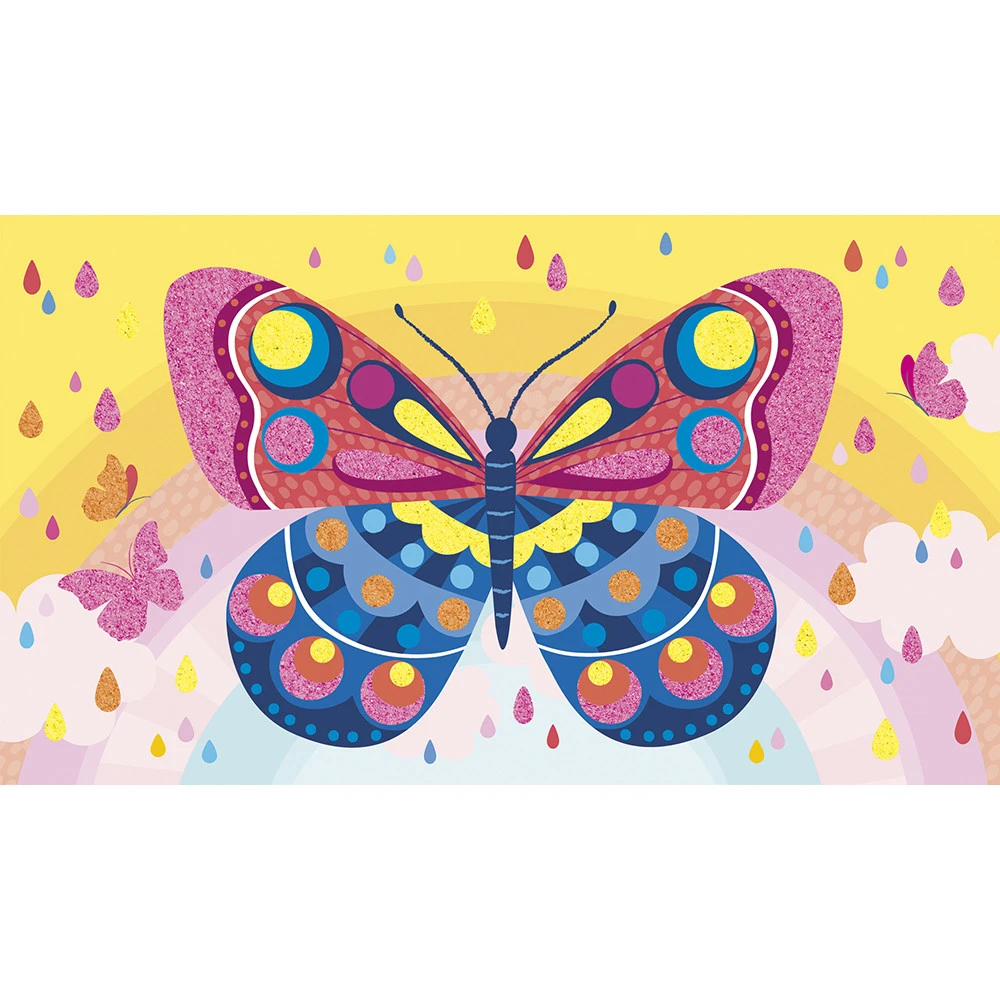 Dévoile les parties pré-encollées grâce au stylet en bambou, applique la couleur de sable de ton choix… et petit à petit, le tableau va s’illuminer et les papillons vont prendre vie.