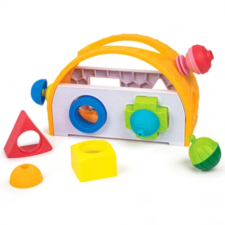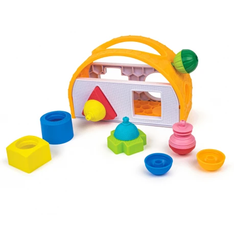 Contient la boîte à formes, 4 perles et 4 pièces forme.