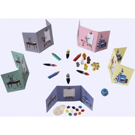 Le 1er joueur lance le dé et propose un mot correspondant au thème du dé. Chaque joueur va alors choisir 3 couleurs secrètement derrière son paravent pour peindre ce mot. Lorsque tout le monde a choisi, on dévoile les choix de chacun.