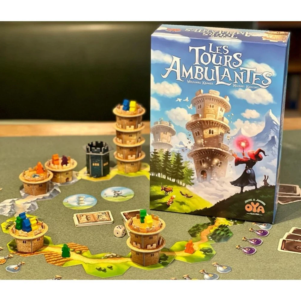 « Les Tours ambulantes » de Oya est un très chouette jeu familial, fluide et à la mécanique unique qui propose de nombreuses variantes pour jouer seul, en coopération et même en mode expert.