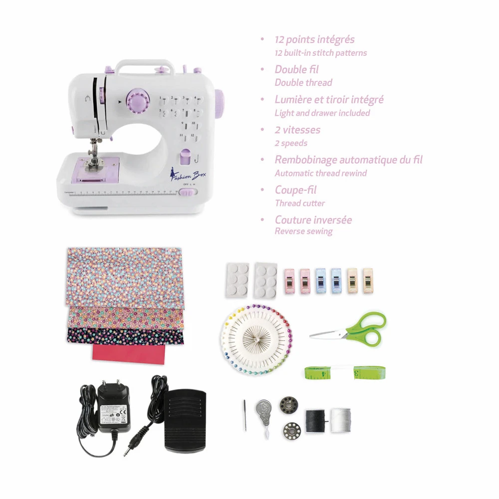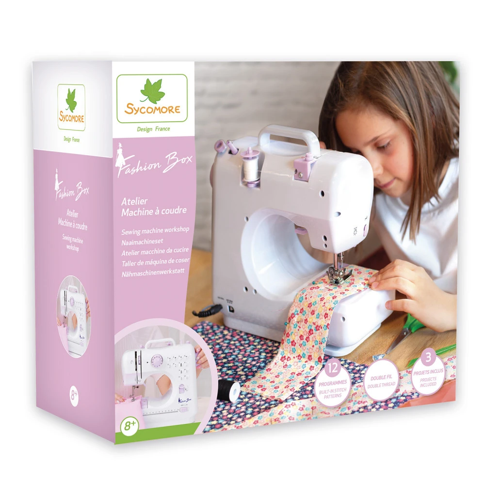 Une vraie machine à coudre double fil sur secteur avec 12 types de points différents et une lampe LED intégrée.