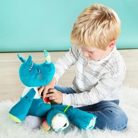 Petit dernier de la collection, Marius le rhinocéros enchantera vos enfants avec des différentes activités tactiles et sonores. Idéalement doux pour lui faire des câlins!