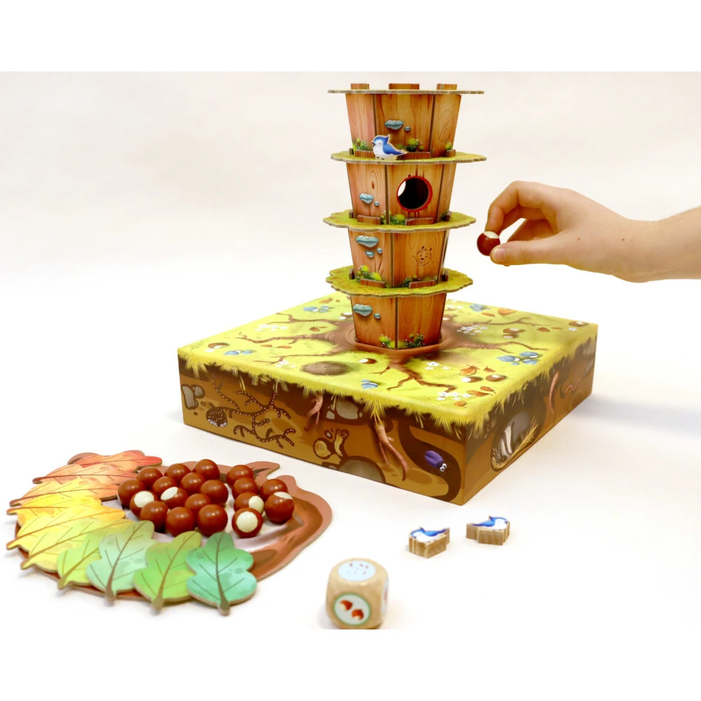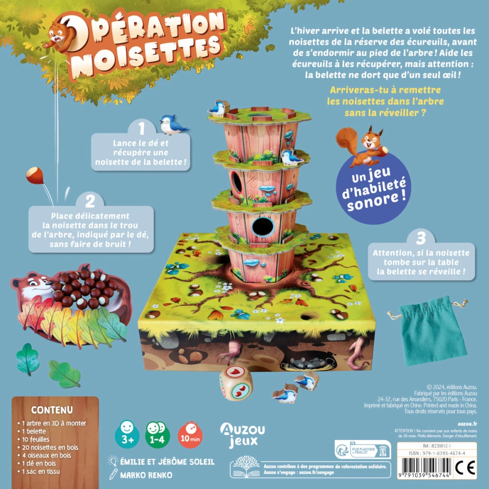 Oh ! Elle s’est endormie au pied de l’arbre. C’est le moment d’aider les écureuils à récupérer leurs noisettes. Attention de ne pas faire tomber de noisettes sur la table pour ne pas la réveiller.