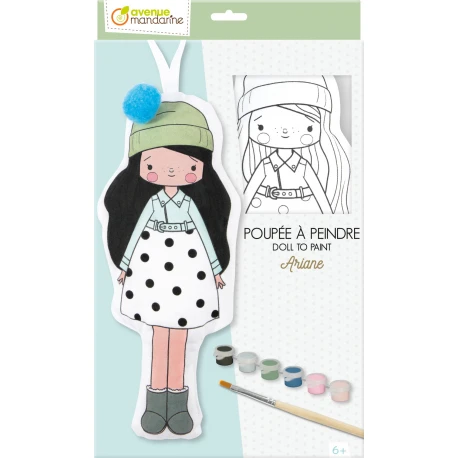 Ariane est une poupée de 29 cm en coton à peindre grâce aux 6 coloris de peinture fournis.