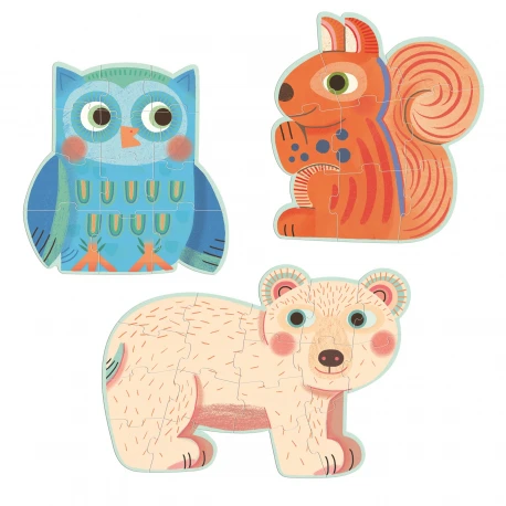 Ce coffret Puzzles primo dans la forêt comprend 3 puzzles évolutifs. Ils sont spécialement conçus pour les enfants à partir de 2 ans. Les grosses pièces ont été conçues en gros carton très résistant pour que les petits puissent les manipuler avec aisance.