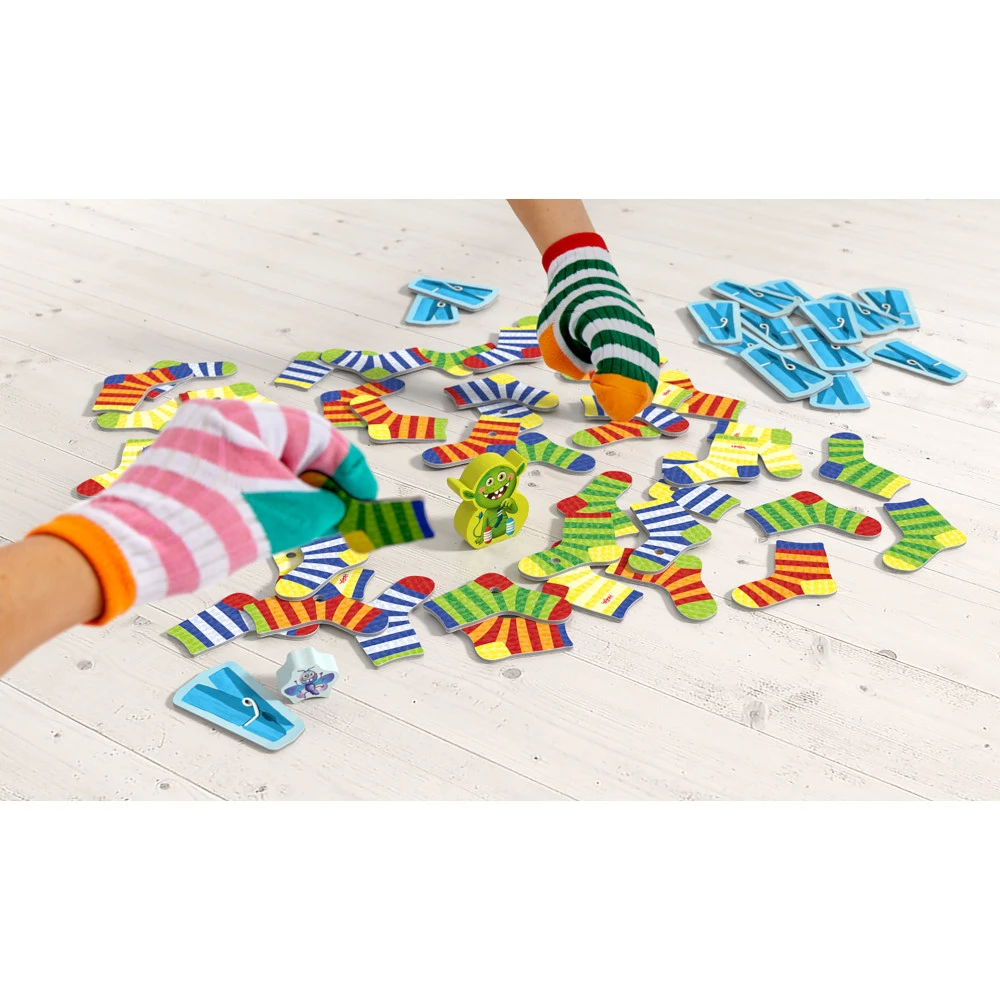 De nouvelles cartes avec des chaussettes trouées par les mites compliquent le jeu et pour plus de fun, vous pouvez enfiler des chaussettes sur les mains et tenter d’attraper les bonnes cartes.