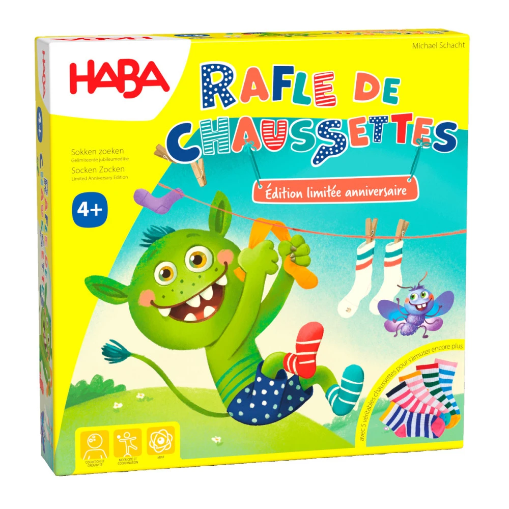 Le très chouette jeu d’observation-rapidité « Rafle de chaussettes » de HaBa fête ses 20 ans et reviens dans une version encore plus rigolote.