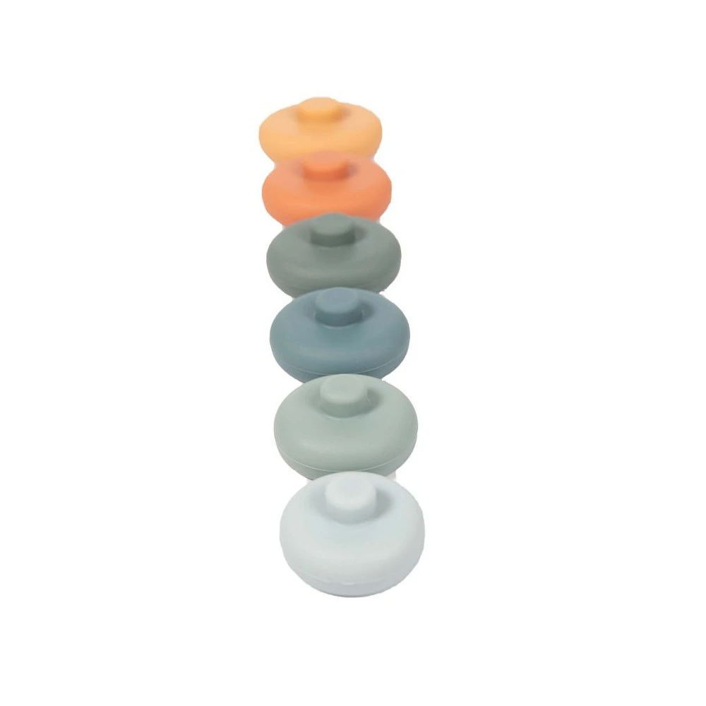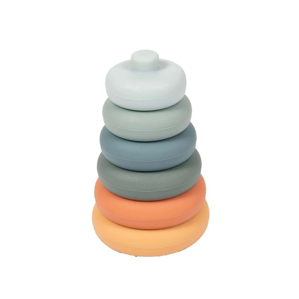 Un grand classique revisité, la tour à empiler multicolore en silicone, un jouet idéal pour développer la motricité fine de votre enfant.