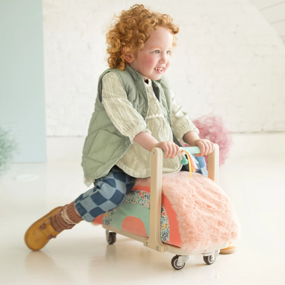 Porteur en bois et tissu très doux pour les premières grandes courses, de la collection Stella le faon de Lilliputiens.