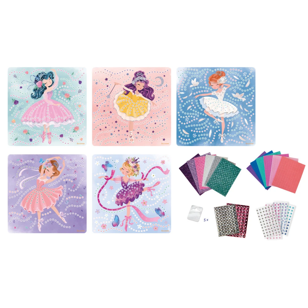 Coffret Stick & fun Au Sycomore pour réaliser 5 tableaux de princesses ballerines avec plus de 1500 mosaïques